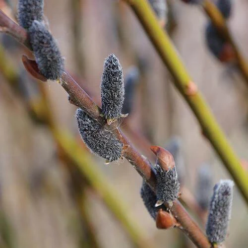 - Fuzzy black and pink pussywillows.