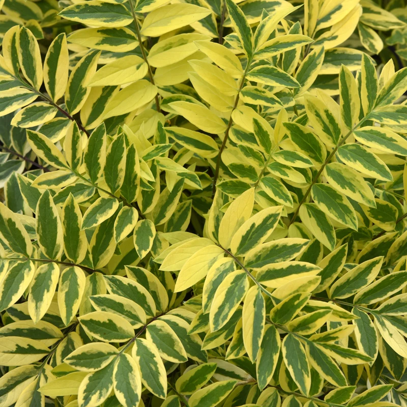 - Golden variegated foliage looks appealing from spring to fall.